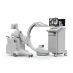 Mobile C-Arm with 40kHz generator, rotating anode tube, and 1k x 1k CCD camera. Features anti-blur technology and extensive storage.