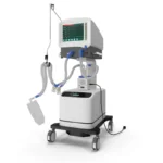 ICU ventilator with 15″ removable touch screen, adult and child applications, built-in battery backup.