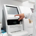 Hematology analyzer with three-part WBC differentiation, 19 parameters + 3 histograms, and 20,000 results storage.