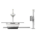 Fully automatic digital radiography system with 17×17 inch flat panel detector and 5-axis electric control.