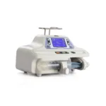 Syringe pump with micro and continuous injection modes, auto syringe identification, and 10 syringe brands preset.